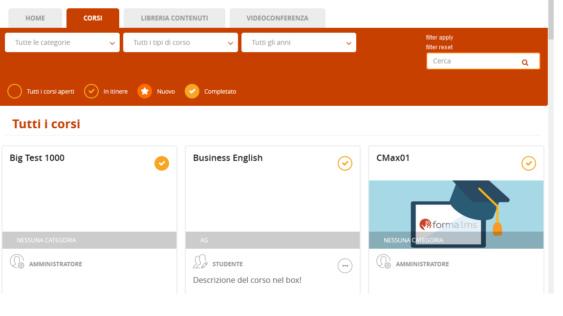 No, nessuna modifica a codice o altro. Semplicemente alcuni corsi prova, privi di contenuti, ma pubblicati. 2 utenti collegati tra cui 1 con diritto di Amministratore. I browser utilizzati sono Safari e Chrome, ma il comportamento con varia. Allego Screenshot.