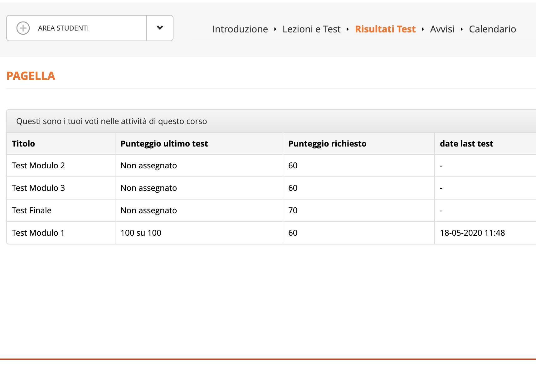 Risultati Test