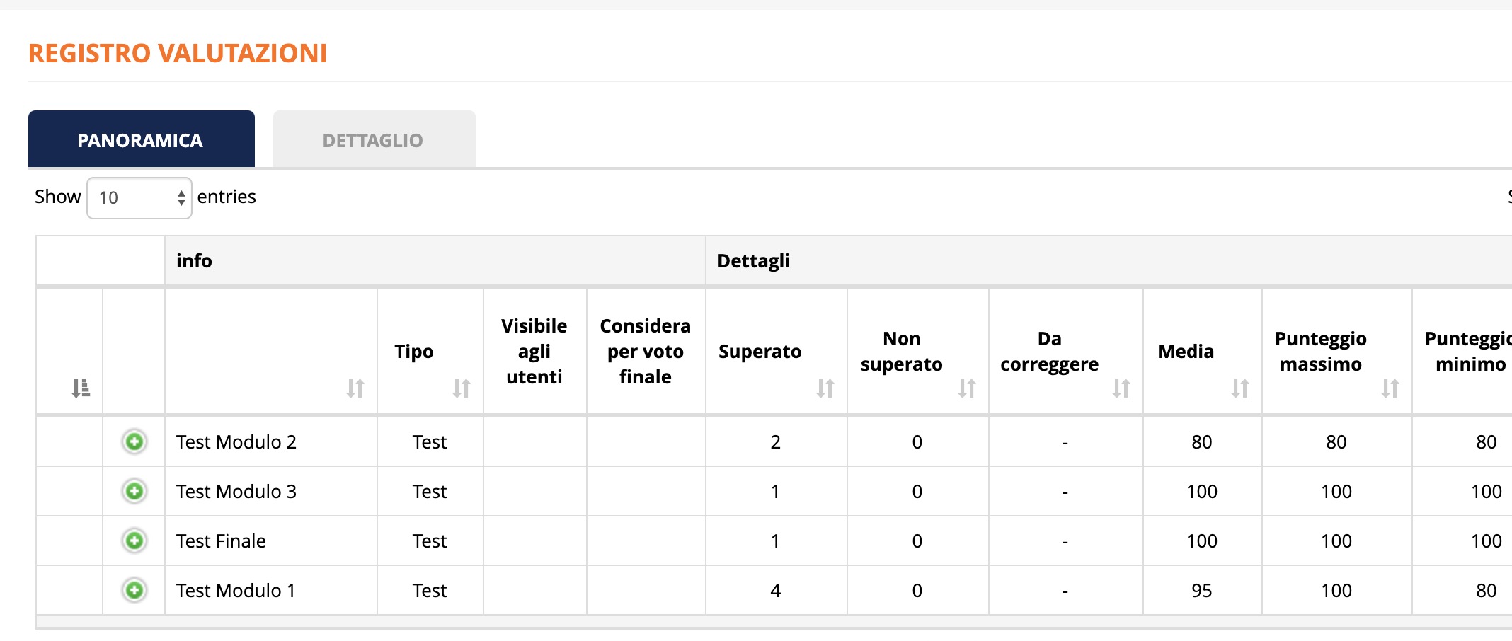 Salve come posso ordinare lato utente, l'ordine "Risultati Test"?