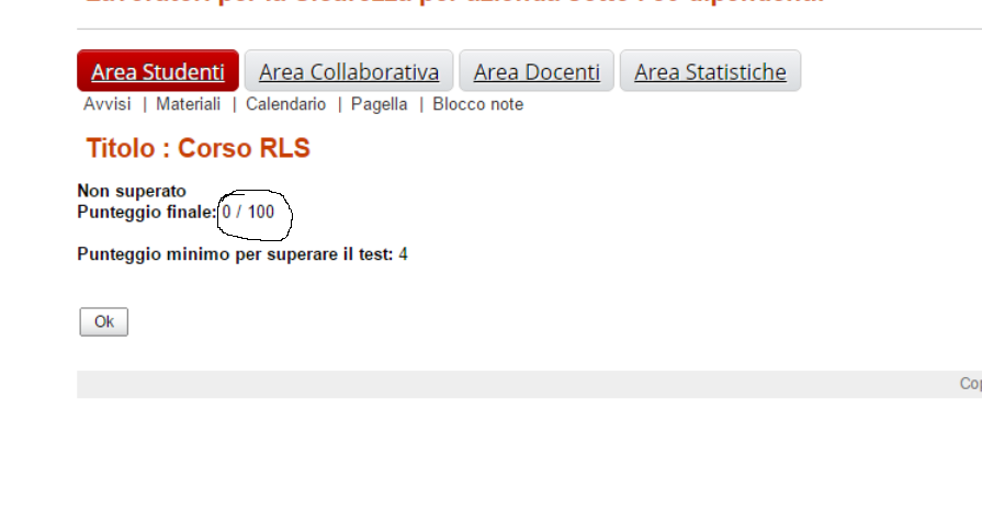 Se imposto un test con 5 domande ed assegno a ciascuna un punto, stabilito il punteggio minimo per il superamento del test a 4 punti perché completato il test il messaggio finale è 4/100 e non 4/5?
