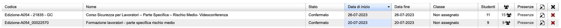 stiamo organizzando diverse sessioni di un corso, abbiamo creato le edizioni e iscritto i partecipanti, sono due sessioni, uno il 20 e l'altra il 26 con partecipanti diversi.